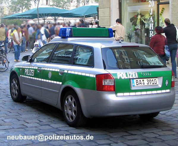 Führungsfahrzeug der Bereitschaftspolizei in neuem Design mit Reflexstreifen.