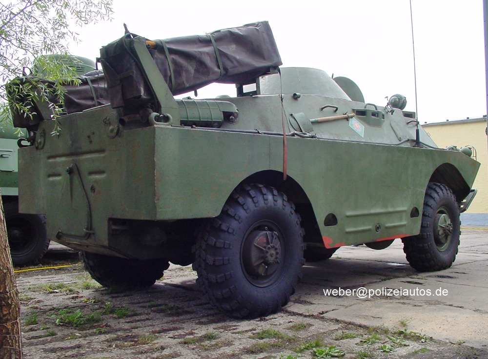 | Beschreibung: | Schützenpanzerwagen der VP-Bereitschaften in der Version zur ABC-Aufklärung. Auf dem Heck befindet sich das in Fahrstellung hochgeklappte Fähnchenschießgerät zur Markierung von Gassen im vergifteten Gelände. Wesentlich häufiger zum gezeigten russischen SPW-40P2 waren ungarische SPW PSH. |