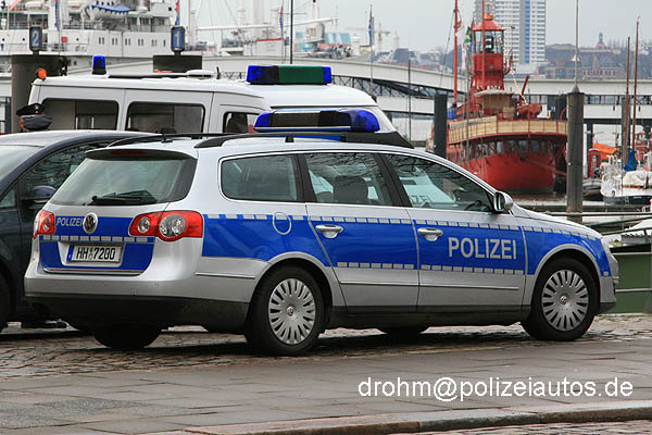 Die beiden Peterwagen aus der ZDF-Serie "Notruf Hafenkante" beim Dreh am 03.03.07.