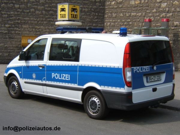 Diensthundeführerkraftwagen mit zusätzlichem Blaulicht hinten und zu öffnendem Seitenfenster, Foto: Berolina