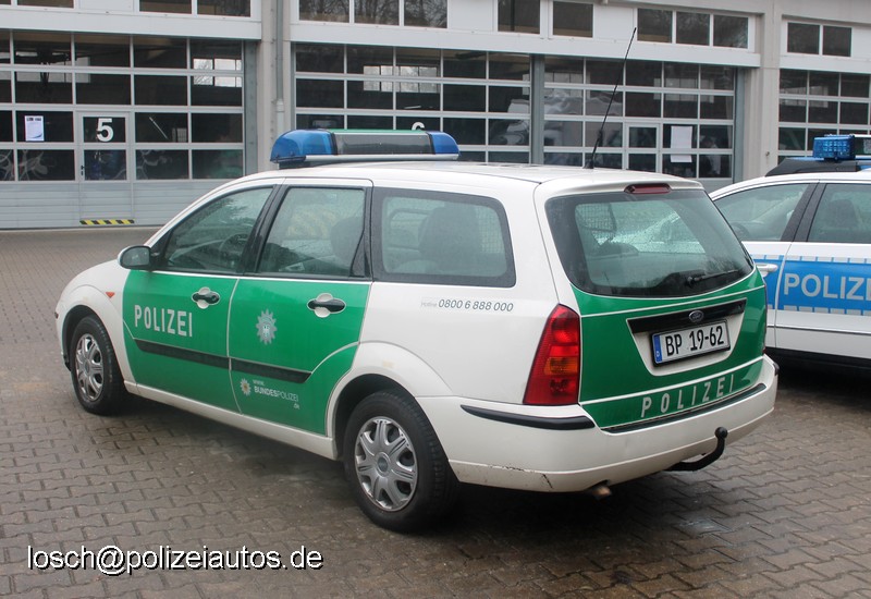 | Beschreibung: | 2001 erprobter Funkstreifenwagen für den Einzeldienst (KFZ 21-E) Ford Focus Turnier. Zeitgleich erprobt wurde auch ein Opel Astra G Caravan sowie ein VW Golf IV Variant. Eine weitere Beschaffung des Ford Focus erfolgte nicht. Eingeführt wurde ab 2002 der VW Golf IV Variant mit veränderter Beklebung gegenüber dem Erprobungsfahrzeug. Nach seiner Außerdienststellung gehörte dieses Fahrzeug zunächst zum Bestand des Bundespolizeimuseums in Lübeck und ist nun seit 2021 im Bestand des Technischen BGS-Museum Rosenheim. |