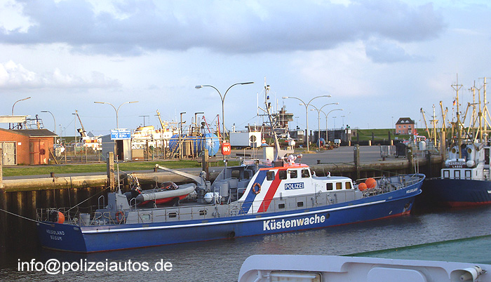 | Beschreibung: | Das Küstenboot Helgoland gehört zum WSP-Revier Husum und ist in Büsum stationiert, wo es auch abgelichtet wurde. Technische Daten Länge: 34,45m Breite: 5,60m Tiefgang: 1,75m Maschine: 2 x Deutz TBD 620 V12, 1.280 KW bei 1.680 U/min Höchstgeschwindigkeit: 26 kn Baujahr: 1973 Rumpf: Stahl Aufbauten: Aluminium Werft: Schiffswerft Ernst Menzer, Hamburg-Bergedorf. Die Besatzung beteht aus 6 Personen. Fotos: Andreas Borchert Zusatz Die "alte" Helgoland wurde im Oktober 2014 ausgemustert und an die Länder Bremen und Niedersachsen verkauft, die es nun gemeinsam unter niedersächsischer Flagge als "W1" weiterbetreiben werden . (Quelle) |