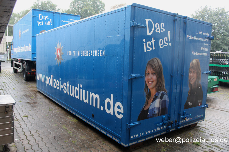| Beschreibung: | Wechselladerfahrzeug der Polizei Niedersachsen incl. zweitem Container mit Nachwuchswerbung (www.polizei-studium.de). 2016 wurde das Transportfahrzeug gewechselt. |