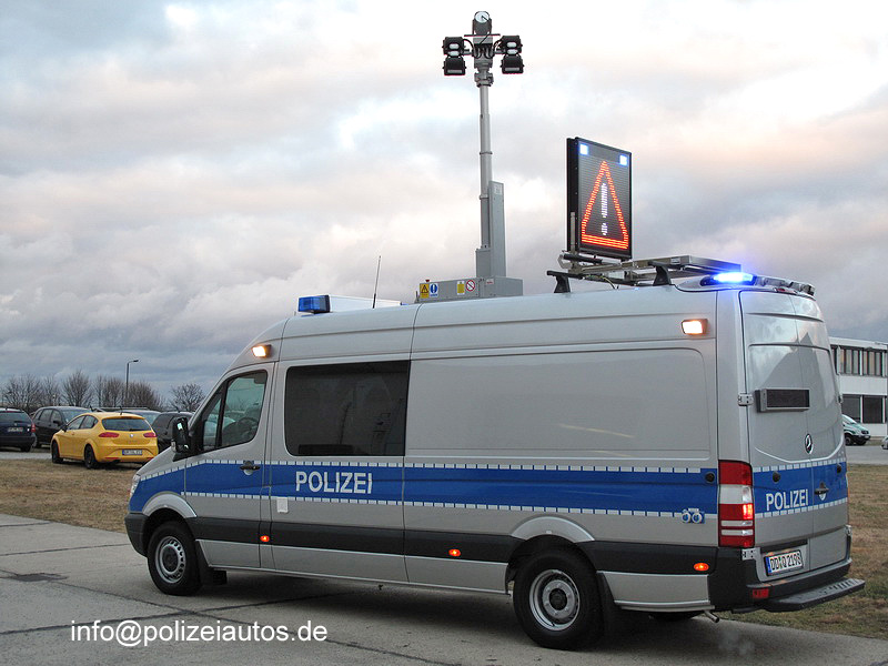 | Beschreibung: | Kontrollfahrzeug der Autobahnpolizei Bautzen - mit Lichtmast, Kamera, 3,5kW-Stromerzeuger und Nissen Wechselverkehrszeichenanlage. Das Fahrzeug wird auch grenzüberschreitend in Polen eingesetzt. - Fotos: www.modellmicha.de |