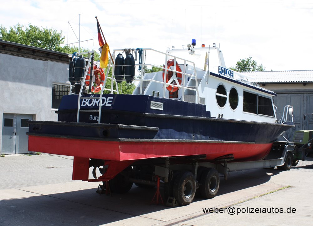 | Beschreibung: | Boot der Wasserschutzpolizei nach optischer Aufarbeitung und techn. Aufrüstung aus der "Werft" zurück. Vorher hatte das Boot, das nach der Wende von der ehem. Volkspolizei übernommen wurde, diese Farbgebung. |