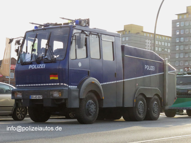 | Beschreibung: | Wasserwerfer 9000 (Wawe 9, Kfz 56/3 gl) der Bundespolizei.
