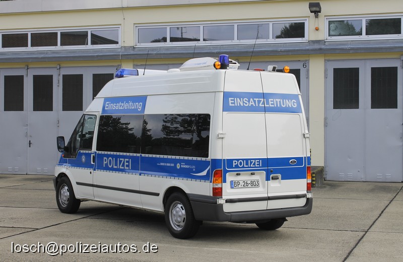 | Beschreibung: | Bundeseinheitlicher leichter Befehlskraftwagen (le Befkw, KFZ 51-a-1) der Bundespolizei. Dieses Fahrzeug wurde im Rahmen der Einheitlichkeit von grün auf blau umgeklebt. Im Gegensatz zu diesem ebenfalls umgeklebten Befehlskraftwagen weicht die Beklebung und Beschriftung ab, das Fahrzeug wurde zudem rundum mit der Beschriftung "Einsatzleitung" versehen. |