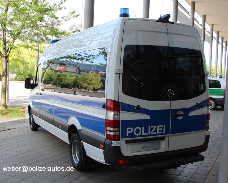 | Beschreibung: | Mercedes-Benz Sprinter 516 CDi, ausgestellt auf der GPEC 2016. Bei dem Fahrzeug handelt es sich in dieser Version (u.a. 10 Sitzplätze, Polycarbonat-Schutzverglasung) um den neuen bundeseinheitlichen Gruppenkraftwagen (Grukw) für die Bundespolizei und die Bereitschaftspolizeien der Länder. |