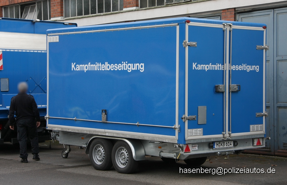 | Beschreibung: | Anhänger des Kampfmittelbeseitigungsdienst Niedersachsen. In diesem Anhänger wird eine Wasserstrahlschneidanlage zum heraustrennen von Zündmechanismen aus Kampfmittelblindgängern transportiert. Das heraustrennen erfolgt mit einem Wasserstrahl der mit 700bar auf den Stahlkörper auftrifft. Datenblatt Auf Bild 4 sieht man einen Teil der verlasteten Anlage. |