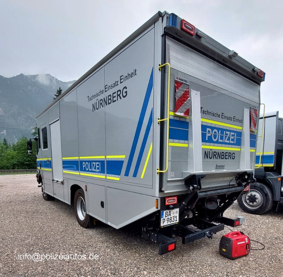 | Beschreibung: | Gerätegruppenkraftwagen (GGKw) der bayerischen Bereitschaftspolizei. Fotos: Robert Augustin |