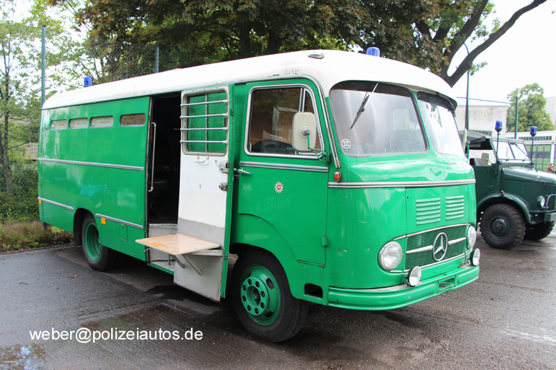 | Beschreibung: | Alter Gefangenentransportkraftwagen der Polizei Niedersachsen, vermutliches Baujahr 1963. Die Aufnahmen 2-4 zeigen das Fahrzeug im Jahr 2016. Auf den beiden vorderen Türen trägt das Fahrzeug nun den kleinen Polizeistern mit dem niedersächsischen Landeswappen. Foto 1: Ingolf Much |