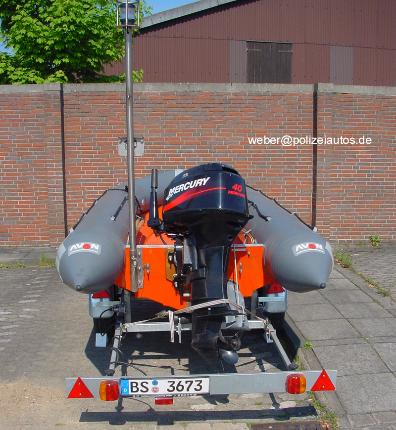 Boot 23 (Avon SR 4) der TEE auf einem Trailer. Inzwischen wurde das Boot aufgearbeitet, umbenannt und der