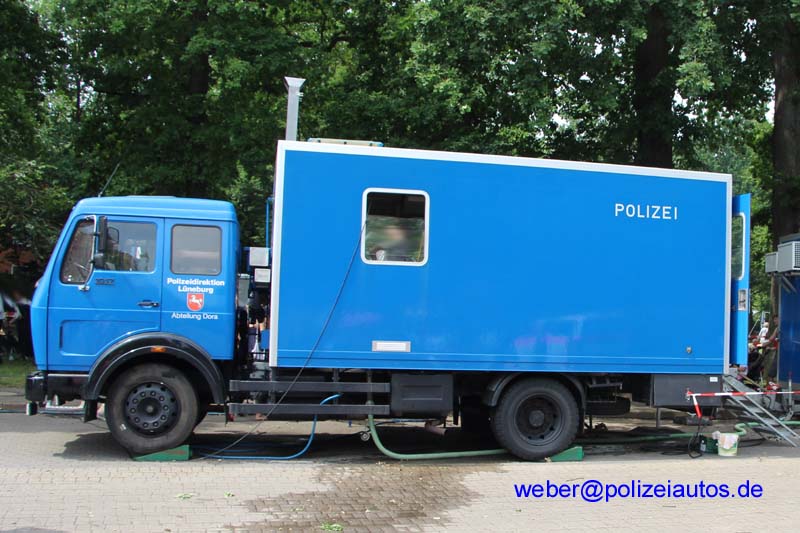 Küchenkraftwagen der Polizei Niedersachen, für die Zubereitung und Ausgabe von Einsatzverpflegung.