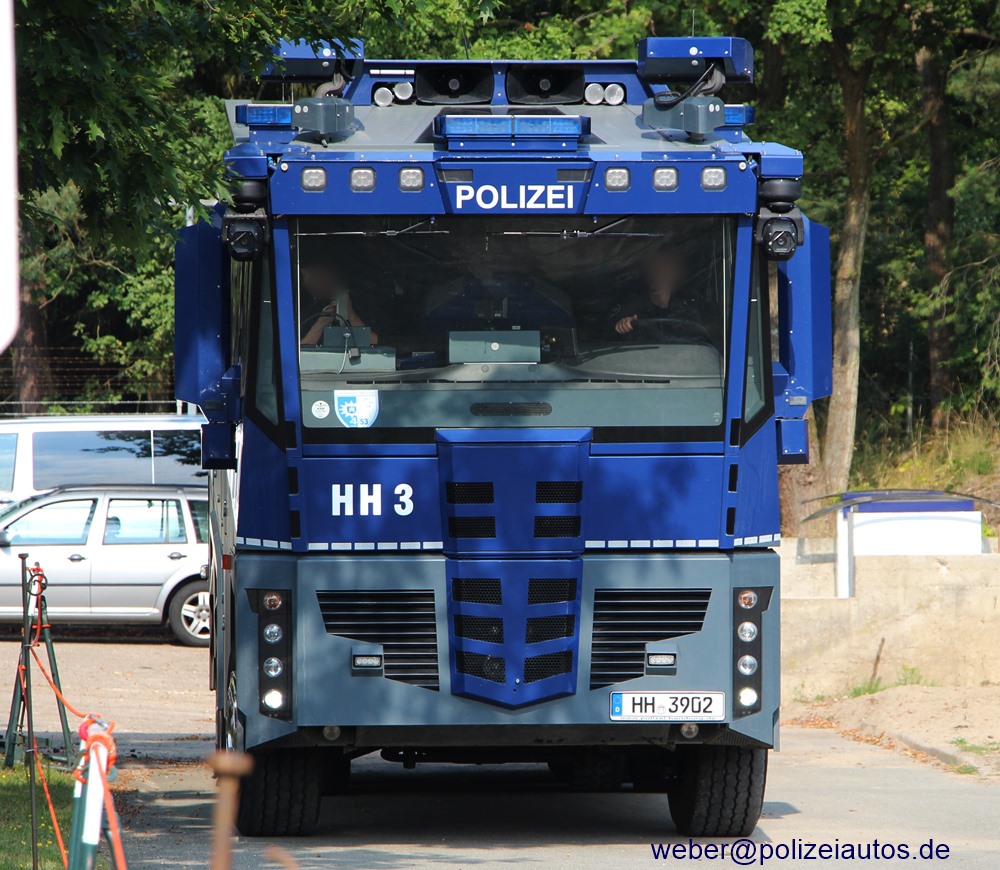 | Beschreibung: | Wasserwerfer 1000. Gegenüber diesem Fahrzeug erhielt dieser WaWe eine zusätzliche, abweichende Beschriftung: HH 3. Hierbei handelt es sich um den damaligen Prototypen des Wawe10. Fotos: Jörns |
