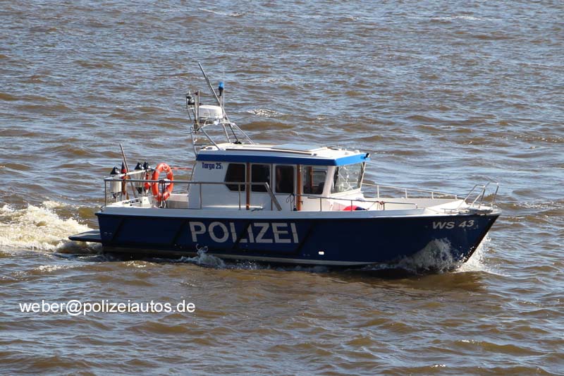 | Beschreibung: | Im Dezember 2014 erhielt die Wasserschutzpolizei Hamburg die neuen Hilfseinsatzboote WS 43 und WS 44, für die ausgesonderten WS 40-42. Die neue WS 43 und WS 44 können mit ihrem geringen Tiefgang von 1,10 Meter und ihren 25 Knoten Höchstgeschwindigkeit sowohl auf der Außenalster, den Kanälen als auch vielen anderen flachen Binnengewässern fahren. Damit können mit ihnen nicht nur die typischen Sportboot- und Schiffskontrollen vorgenommen werden, sondern sie können auch beim Hafengeburtstag oder dem Kirschblütenfest eingesetzt werden. Die Bootsrümpfe bestehen aus seewasserbeständigem, glasfaserverstärktem Kunststoff (GFK). Die Boote können bis zu einer Windstärke von acht Beaufort und einer Wellenhöhe von maximal vier Metern eingesetzt werden. Der wassergekühlte und mit Dieselkraftstoff betriebene Innenbordmotor verfügt über eine Leistung von 191 Kilowatt (260 PS) und erreicht eine maximale Dauergeschwindigkeit von 25 Knoten. Die neuen Dienstboote sind 8,38 Meter lang, 2,97 Meter breit und haben einen Tiefgang von 1,10 Meter. Später, 2018/2019, erhielten die Boote eine "Battenberg-Markierung" |