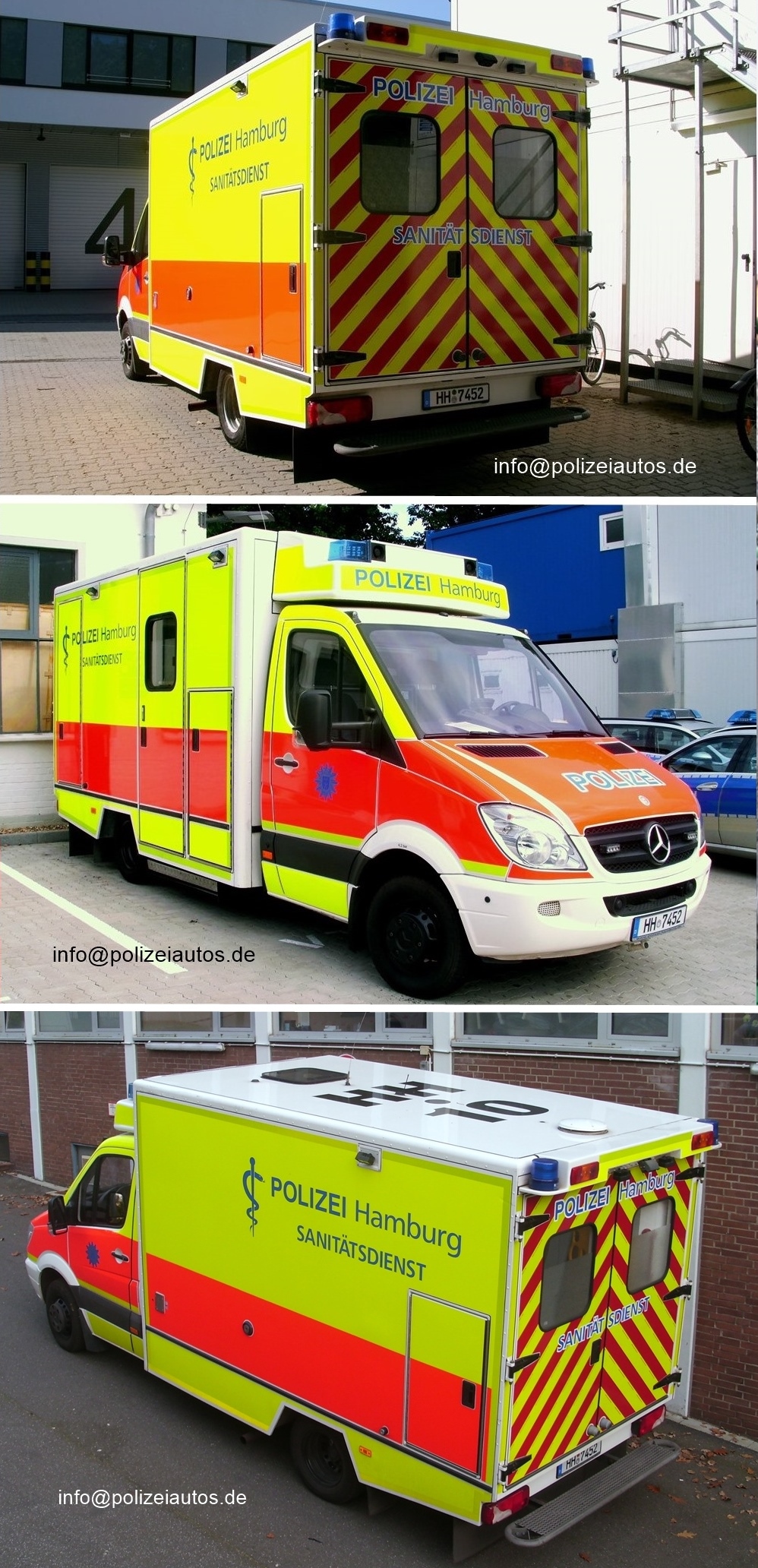 | Beschreibung: | Sanitätskraftwagen der Polizei Hamburg. Dieser ehemalige RTW -Aufbau Fahrtec- wurde im Frühjahr 2018 von der Feuerwehr Hamburg übernommen (Fotos 7+8) und den polizeilichen Bedürfnissen angepaßt. Mittlerweile wurde die Motorhaube um einen POLIZEI-Schriftzug ergänzt und die Felgen schwarz lackiert (Foto 5+6). Fotos + Infos: I. Kröning |