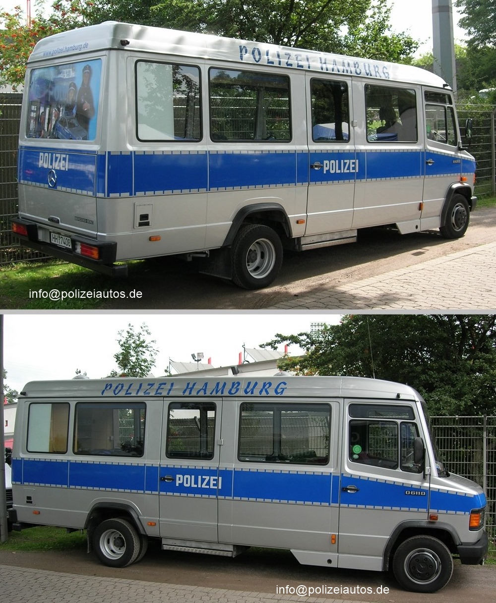 | Beschreibung: | Info-Mobil der Polizei Hamburg. Das Fahrzeug wurde im Laufe der Zeit komplett silberfarben lackiert, mit einer blauen Bauchbinde und neuer Beschriftung versehen und später wurden auch noch Reflexstreifen aufgebracht Foto 1: Jörns (2004) Foto 2: I. Kröning (2005) Fotos 3+5: (2012) |