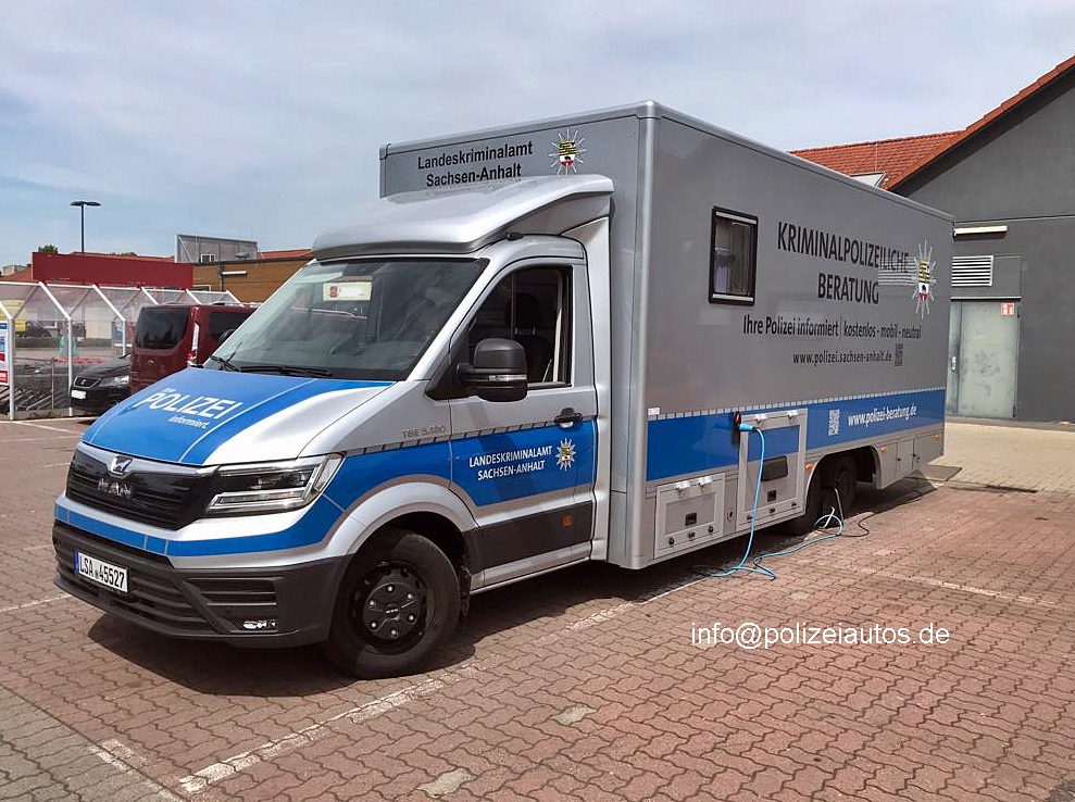 Infomobil des LKA Sachsen-Anhalt mit Tandemachse und Einfachbereifung.