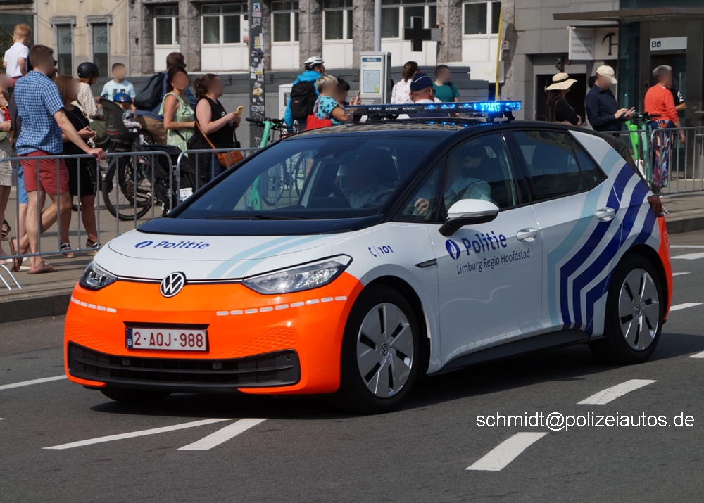 Elektrisches Einsatzfahrzeug der belgischen Polizei in der Polizeizone ‚Limburg Regio Hauptstadt‘.