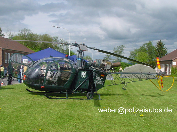 | Beschreibung: | Verbindungs- und Beobachtungshubschrauber der Grenzschutz-Fliegerstaffel Mitte. Technische Daten: Max. Geschwindigkeit: 205 km/h Reisegeschwindigkeit: 167 km/h Reichweite normal: 750 km Flugdauer: 4:30 h Sitzplätze: 4 (incl. Besatzung). |