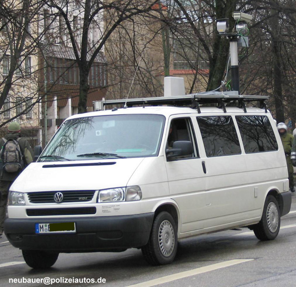 Beweissicherungs- und Dokumentationskraftwagen mit Dachaufbau und installierter Teleskop- Videokamera. Scheiben hinten sind verdunkelt.