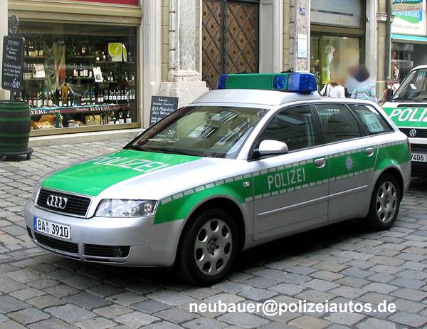 Führungsfahrzeug der Bereitschaftspolizei in neuem Design mit Reflexstreifen.