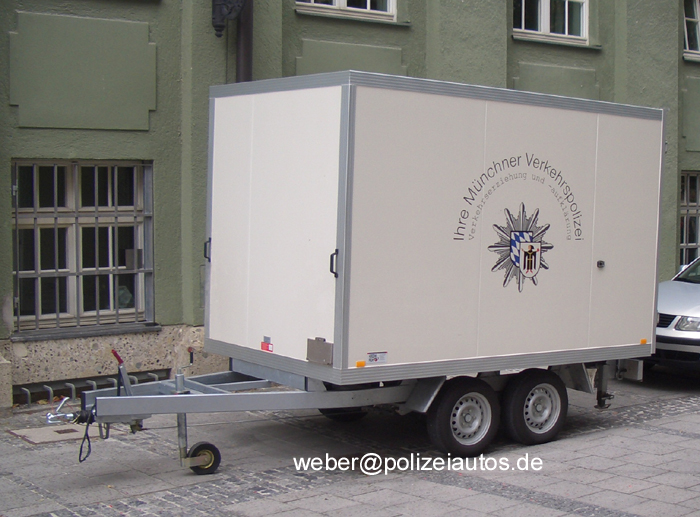 Anhänger der Münchner Verkehrspolizei, beladen mit Gerätschaften zur Verkehrsaufklärung und -erziehung