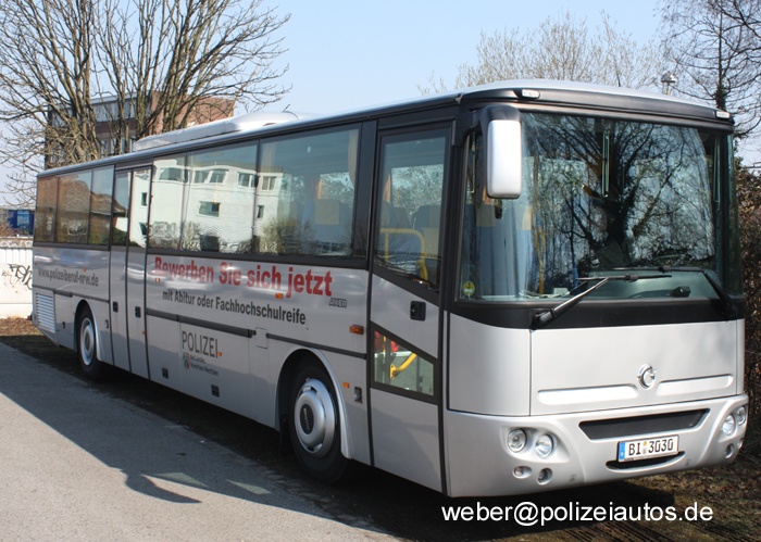 Reisebus der Polizei NRW als "Werbeträger" (Nachwuchswerbung) für die Ergreifung des Polizeiberufes