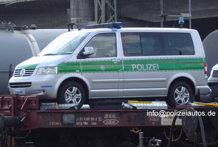 | Beschreibung: | Funkstreifenwagen VW T5 Multivan der bayerischen Polizei noch auf dem Autotransportzug im Rangiergüterbahnhof München Nord in Karlsfeld. Foto: M.S. |
