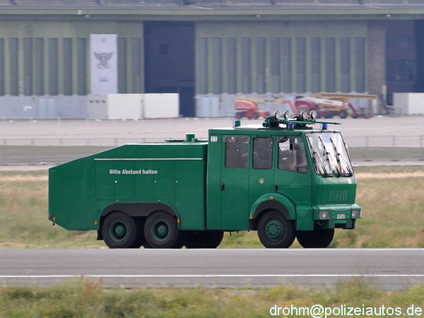 WAWE 9000 der Berliner Polizei im Einsatz anlässlich der versuchten Besetzung des Flughafens Tempelhof.
