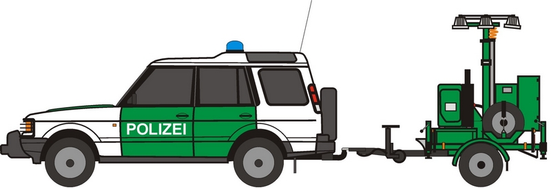Geländegängiger Personenkraftwagen mit Lichtmastanhänger