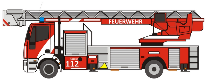 Drehleiter mit Korb. Bitte beachten Sie die Hinweise in der