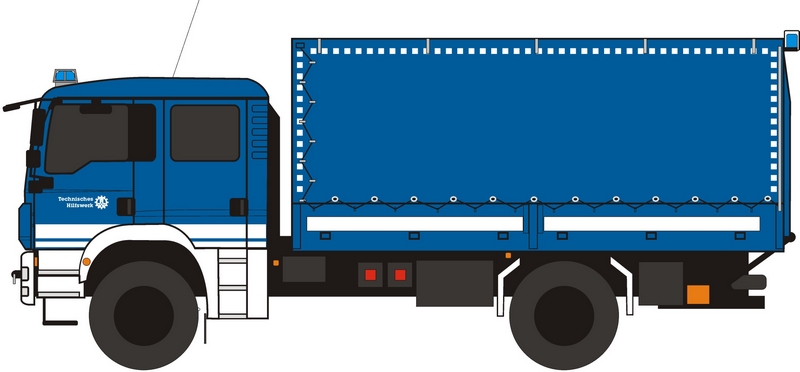 Mehrzweckkraftwagen der zweiten Bergungsgruppe eines Technischen Zuges des THW. Bitte beachten Sie die Hinweise in der