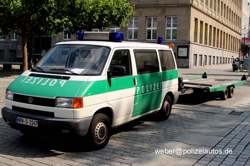 Funkstreifenwagen mit Plattformanhänger zum Transport (zumindest am 13.07.13)