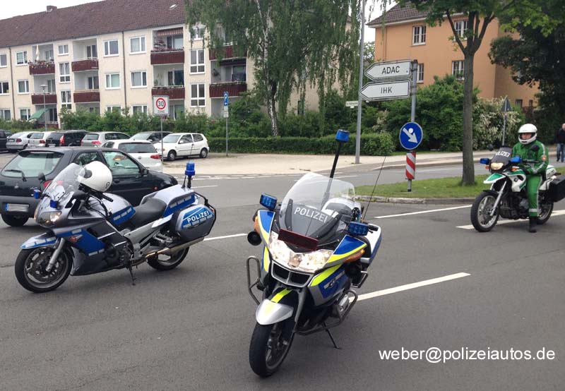 | Beschreibung: | Im Wandel der Zeit: Straßensperrung mittels dreier unterschiedlich farblich folierter Kräder der nds. Polizei. Auch die farbliche Umstellung der Kradbekleidung ist noch nicht vollzogen. |