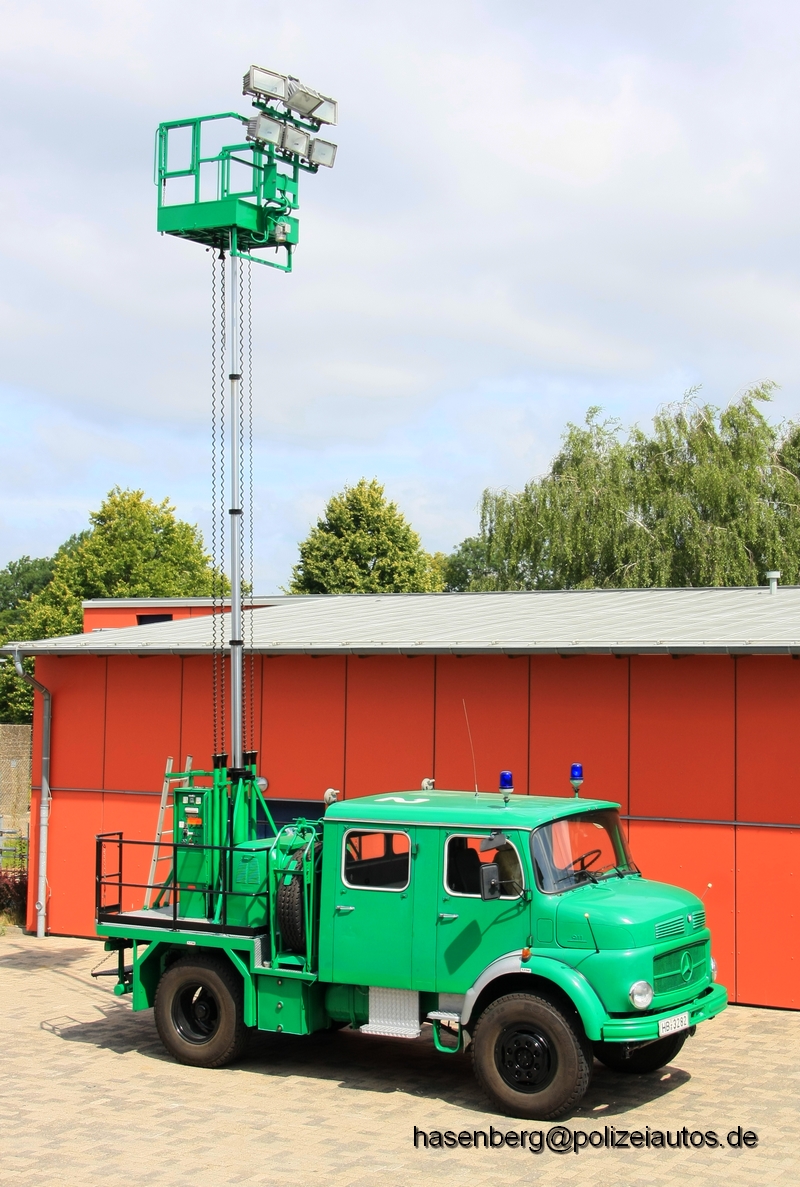 Das Fahrzeug wurde 1979 von der Fa. Voll aufgebaut, und ist heute noch im Einsatzdienst. Angetrieben wird der Stromerzeuger der Fa. Polyma über einen VW Industriemotor. Bilder in der Fahrstellung gibt es hier zusehen. |