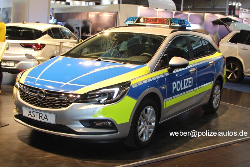Opel Astra Sports Tourer als Funkstreifenwagen in der VESBA-Version, ausgestellt auf der GPEC 2016.