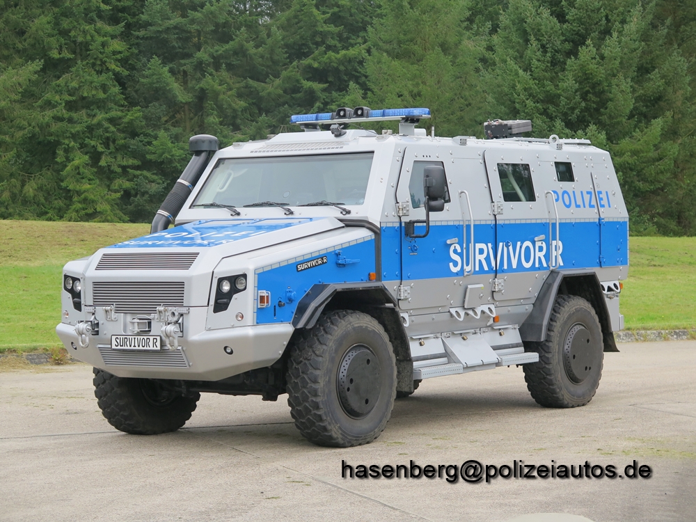 Dieses Fahrzeug wurde gemeinsam von den Firmen Rheinmetall und Achleitner für den polizeilichen Einsatz entwickelt. Es basiert auf einem serienmäßigen MAN TGM Fahrgestell mit einer Leistung von 330 PS bei einem maximalen Gewicht von 15 Tonnen. Anders als dieses Fahrzeug verfügt es über einen Blaulichtbalken als Warneinrichtung und eine andere Beschriftung. |