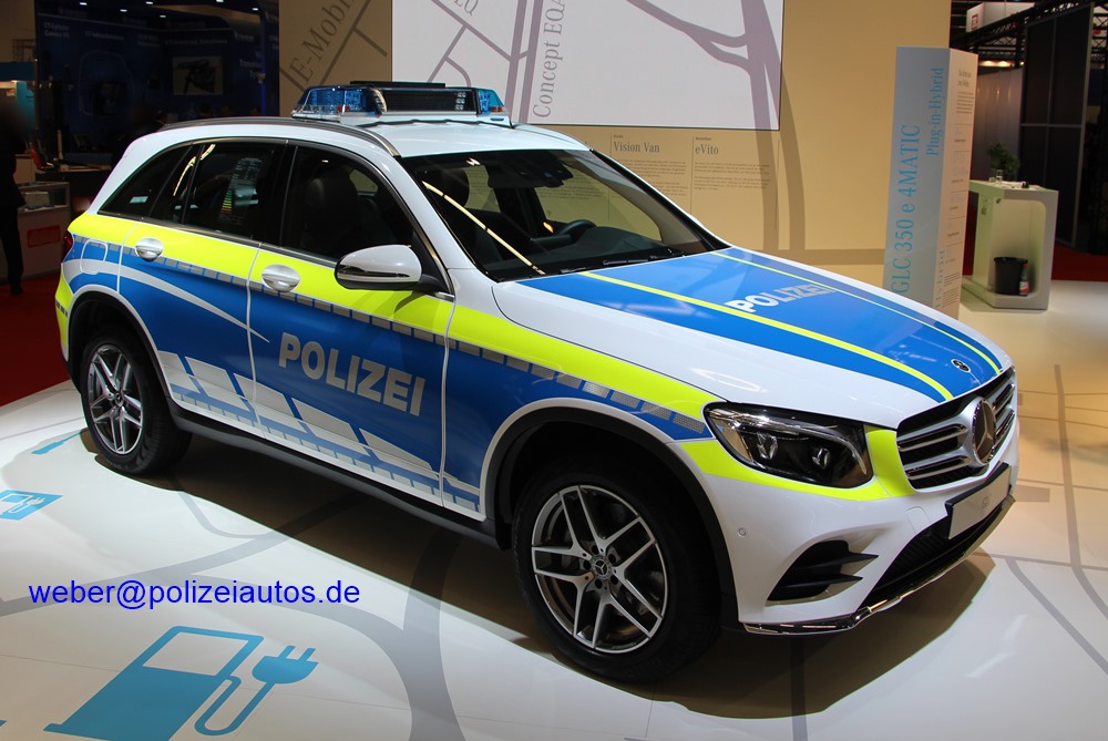 Mercedes-Benz GLC 350e in der Version als Funkstreifenwagen, ausgestellt auf der GPEC 2018.